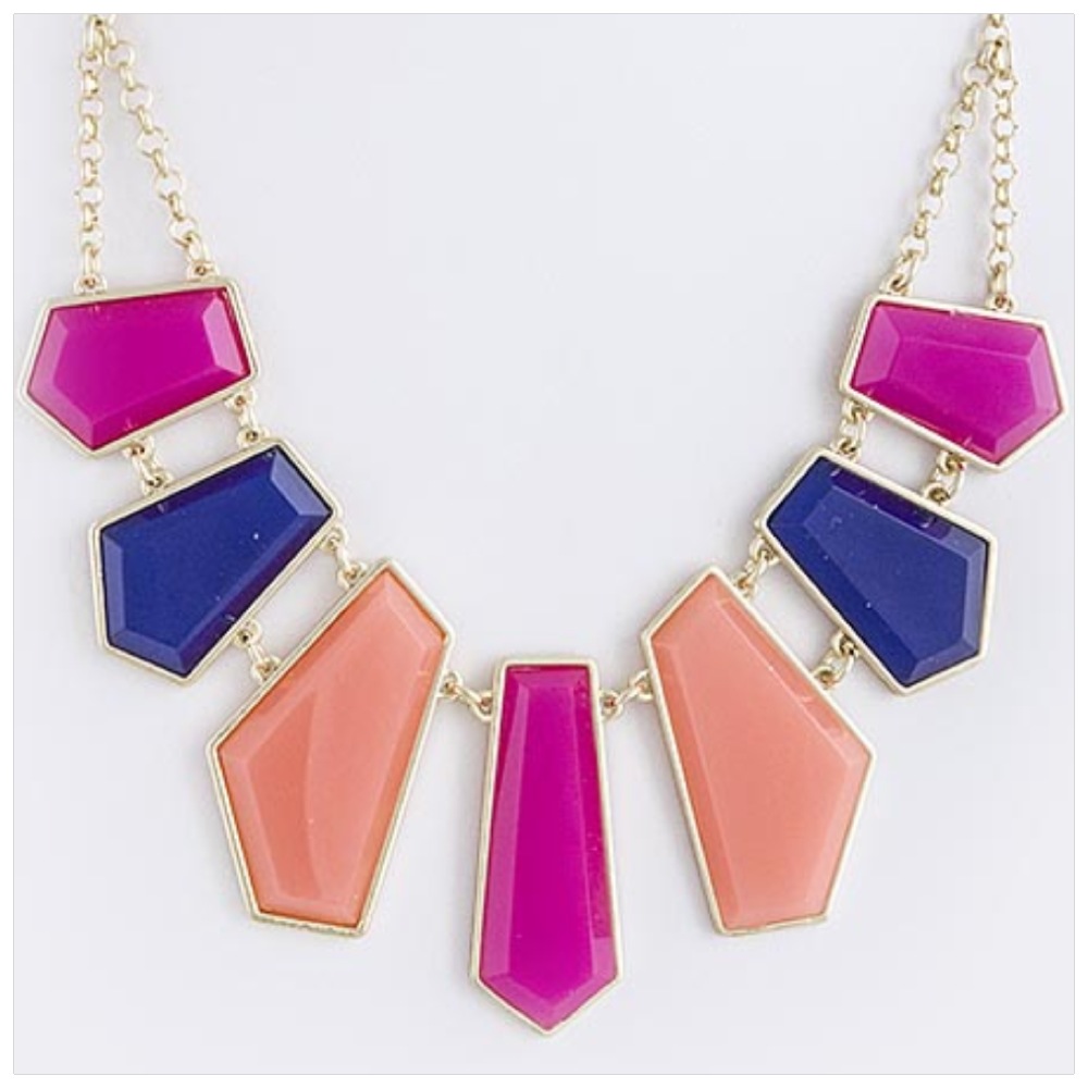 Sweeten up your attire with the Flirtini Necklace, a gold statement necklace featuring plum, peach and magenta adding the perfect pop of color to any outfit that needs a lift.
