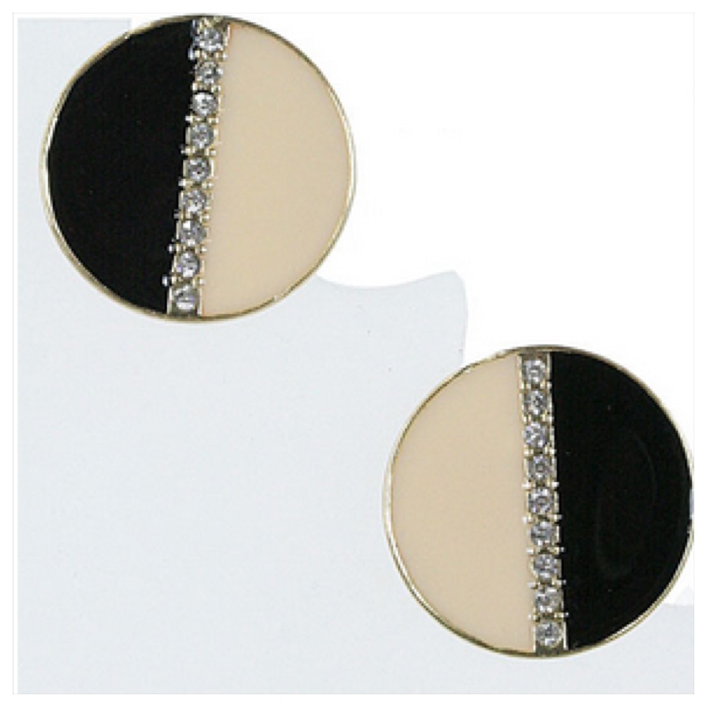 Add an understated elegance to your wardrobe with these black and ivory colorblock studs with rhinestone detail.