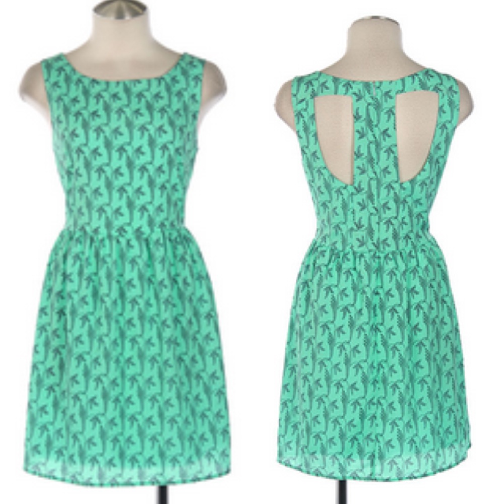 Headed to a fall reception? Add this lovely, mint number to your wardrobe and impress that special someone on the dance floor. Pair this piece featuring a navy, floral pattern with nude pumps and a rose gold cuff.